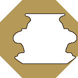 ist es, fünf Achtecke - mit den eingestanzten Umrissen eines Pferdekopfes, einer Vase, einer